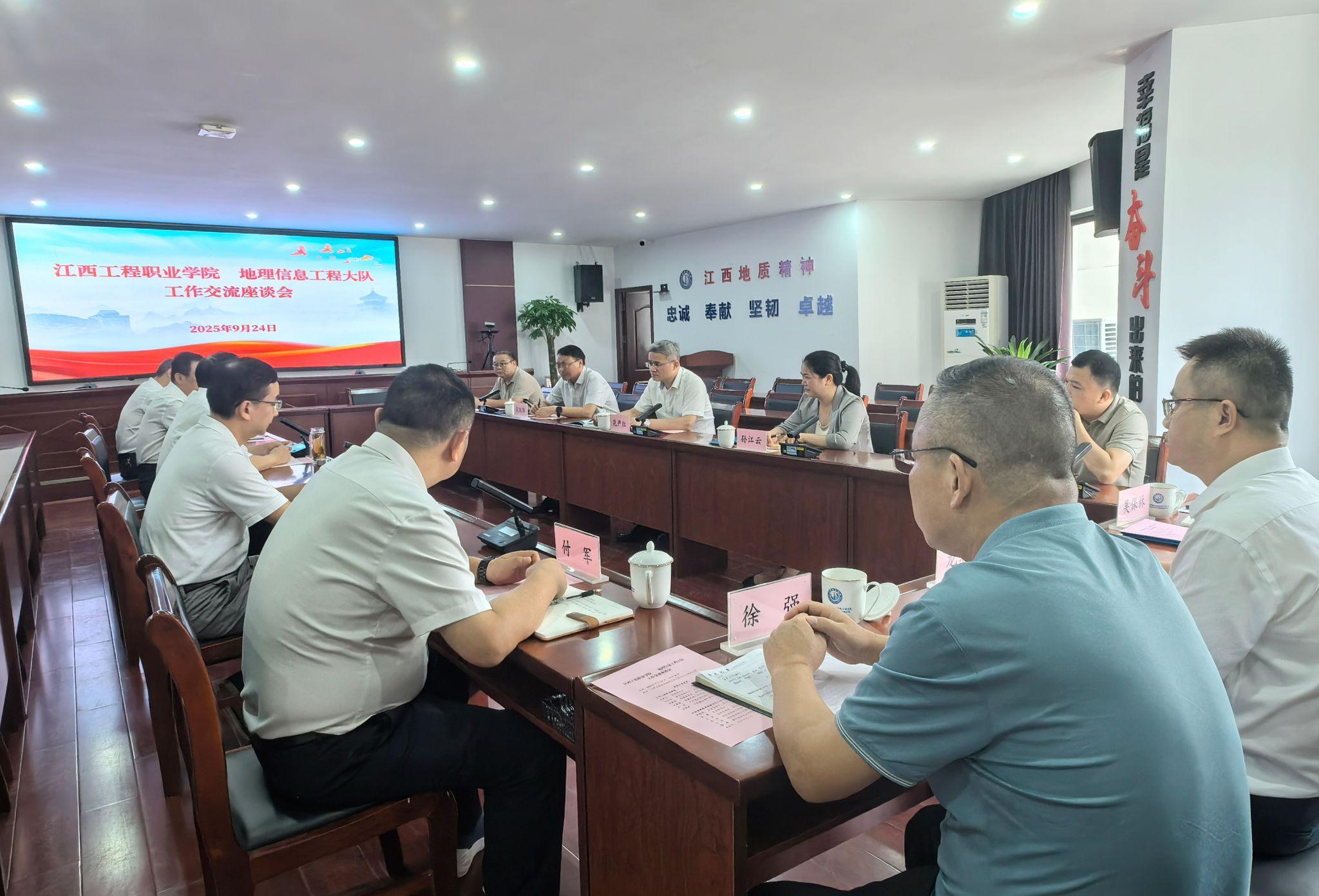 洽谈会上,花严红介绍了学校的发展规划与特色定位。他指出,学校始终坚持以服务区域经济发展为宗旨,高度重视学生的实践能力和职业素养培养。江西省地质局地理信息工程大队作为省内地理信息领域的标杆单位,技术实力雄厚,产业经验丰富,与学校多个专业领域,尤其是工程测量技术、生态环境大数据技术、无人机测绘技术、软件技术、人工智能技术应用等专业的契合度高。希望通过此次交流,双方能在高水平专业群建设、“双师型”教师培养、共建生产性实训基地与产业学院、联合申报科研项目与技术创新等方面开展全面、深入的合作。
