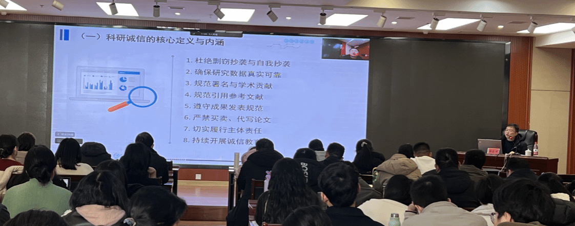 培训中,李志平教授以“讲诚信:科研诚信与案例警示教育”为主题,围绕“科研诚信是什么”“为什么要有科研诚信”“科研诚信如何做到”等三个维度展开系统讲解。他从科研诚信的基本内涵出发,深入解读了国家关于科研诚信建设的最新政策法规,并结合近年来高校科研领域发生的典型违规案例,以案说法、以案示警,深刻剖析科研失信行为的严重后果,为全体参训人员敲响了警钟。